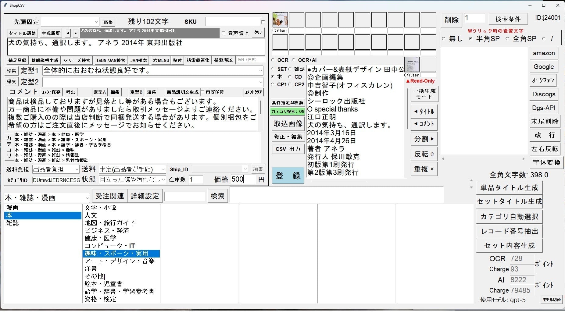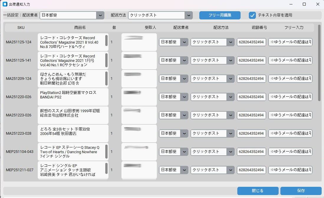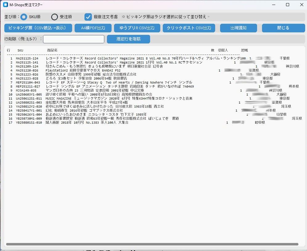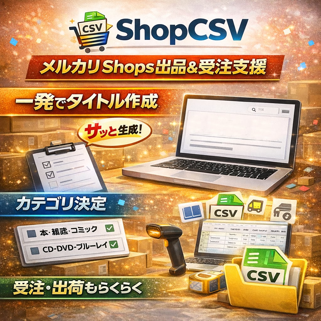 「出品CSV作成」「受注管理」「出荷準備」を一括で行えるアプリです。